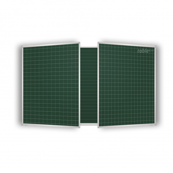 Износостойкая поверхность зеленого цвета для письма мелом в линию и прикрепления информации магнитами. Возможна лакированная или керамическая поверхность. 5 рабочих поверхностей – 3 внутрених и 2 внешних. Массивная рамка из анодированного алюминия с пластиковыми уголками. С обратной стороны доска дополнительно укреплена оцинкованным листом. В комплекте полка для мела. Надежное крепление к стене в четырех углах, комплект для крепления прилагается.