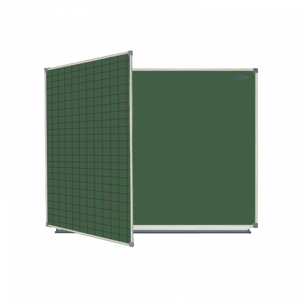 Полимерная износостойкая расчерченная поверхность зеленого цвета для написания мелом и крепления информации магнитами. У доски есть три рабочие поверхности. Рамка из усиленного алюминиевого профиля серебристого цвета с пластиковыми защитными элементами. Доска с обратной стороны укреплена металлическим листом.