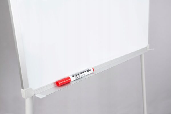 - Поверхность: магнитная поверхность – 70×100 см, гладкая и прочная. Предназначена для письма маркерами и использования листов флипчарта. Доска легко протирается сухой губкой, дополнительно рекомендуется использовать жидкость для очистки доски.