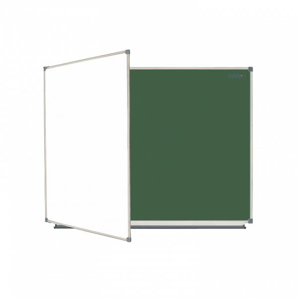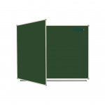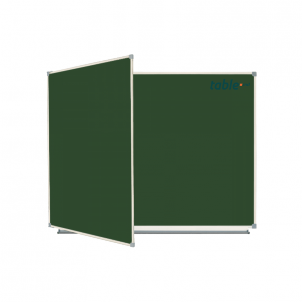 Полимерная износостойкая поверхность зеленого цвета для написания мелом и крепления информации магнитами. У доски есть три рабочие поверхности. Рамка из усиленного алюминиевого профиля серебристого цвета с пластиковыми защитными элементами. Доска с обратной стороны укреплена металлическим листом.