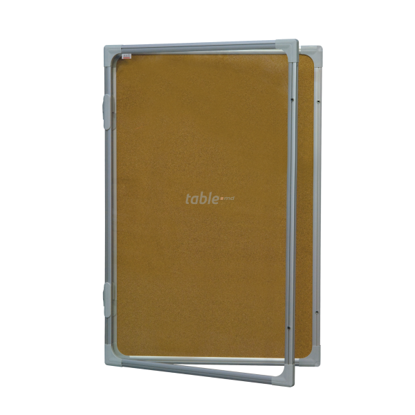 Panou din plută, metalo-ceramică sau textil (disponibil în culorile bleu-marin, gri și verde), cu ramă din aluminiu și colțare ABS din plastic. Este destinat pentru interiorul încăperilor sau afară sub streașină. În dependență de suprafață informația se atașează cu ajutorul pionezelor, magneților sau se scrie cu markerul. Pentru rigiditate, partea din spate este dublată de o foaie de tablă metalică. Partea frontală este din sticlă organică culisantă pe șina interioară a ramei din aluminiu, cu colțare ABS, prevăzută cu sisteme de închidere cu cheia (sunt incluse 2 chei în set) pentru securizarea materialelor afișate. Fixarea de perete se face cu 4 șuruburi (incluse în set). Garanție: 2 ani pentru produs, 10 ani pentru suprafața ceramică.