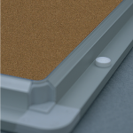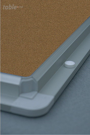 Panou securizat din plută, metalo-ceramică sau textil (disponibil în culorile bleu-marin, gri și verde), cu ramă din aluminiu și colțare ABS din plastic. Pentru rigiditate, partea din spate este dublată de o foaie de tablă metalică. Partea frontală este din sticlă organică și ramă din aluminiu, cu colțare ABS, prevăzută cu sisteme de închidere pentru securizarea materialelor afișate. Fixarea de perete se face cu 4 șuruburi (incluse în set). Garanție: 2 ani pentru produs, 10 ani pentru suprafața ceramică.