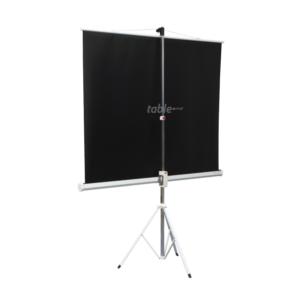 Ecran de proiectie mobil trepied – suprafața albă cu bandă neagră sau verde în jurul contractului imaginii. Pânza este înfășurată în carcasa specială, care protejează ecranul împotriva deteriorării, a prafului și a altor factori nedoriți. Electrică sau manuală, pe tavan/perete sau pe tripod – la alegerea fiecărui client.