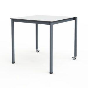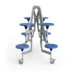 • Construcția: picioarele realizate din metal, vopsite electrostatic. Masa dotată cu roți (cu sistem de blocare). Masa este prevăzută cu 8 scaune fixate de construcția mesei.