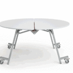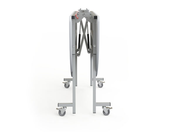 - Construcția: picioarele realizate din metal, vopsite electrostatic. Masa dotată cu roți (cu sistem de blocare). Masa nu este este prevăzută cu scaune fixate de construcția mesei.
