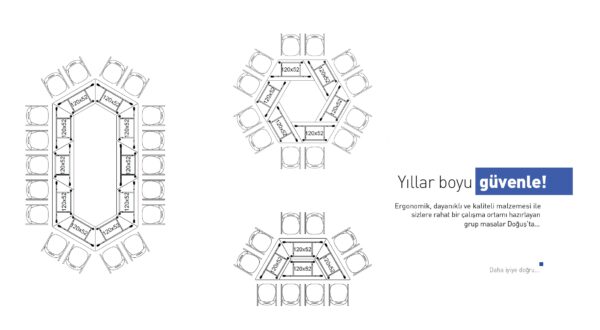 Pentru această masă se recomandă scaune cu înălțimea de 34 cm.