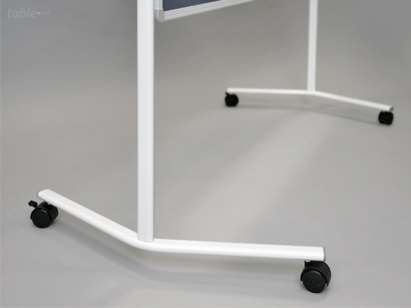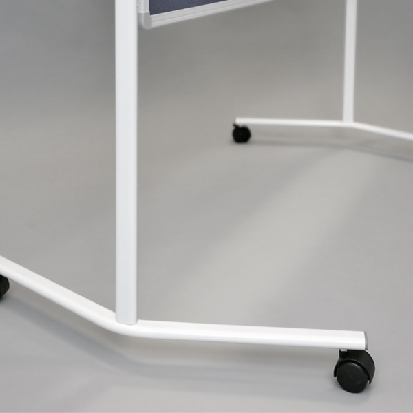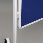 Perete despartitor individual Pin board tesatura are un cadru de aluminiu argintiu, fin cu o lățime de 20 mm. Separatorul este stabil, fiind încadrat într-un suport din aluminiu dur, pe rotile cu sistem de blocare.