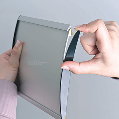 Placa de perete convexă este destinată pentru utilizarea în interior. Produs din profile de aluminiu în culoarea argintie. Informația care este plasată în interior, este protejată de o folie anti-reflexivă. Placa este fixată la peretele cu o bandă autoadezivă pe ambele părți.