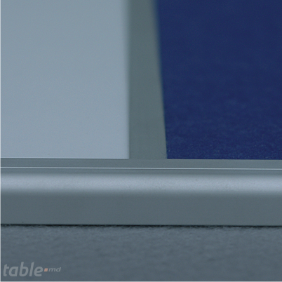 Tablă metalo-ceramică magnetică cu suprafața albă unită cu ajutorul unui profil de aluminiu cu tabla cu suprafață din plută sau textil, utilizată ca avizier, disponibilă în 5 culori (albastru, verde, gri, roșu și culoarea carminului). Rama este realizată din profil de aluminiu, iar colțurile din plastic de culoarea surie. Setul include: un suport pentru markeri cu lungimea de 30 cm și elementele pentru montare. Garanție: 2 ani la produs, 10 ani la suprafața ceramică.