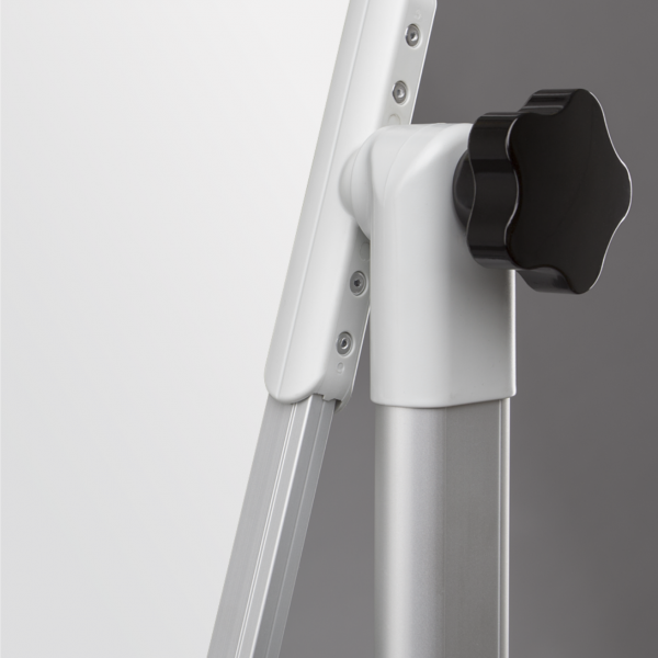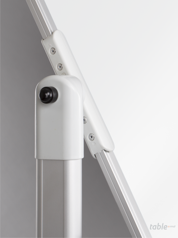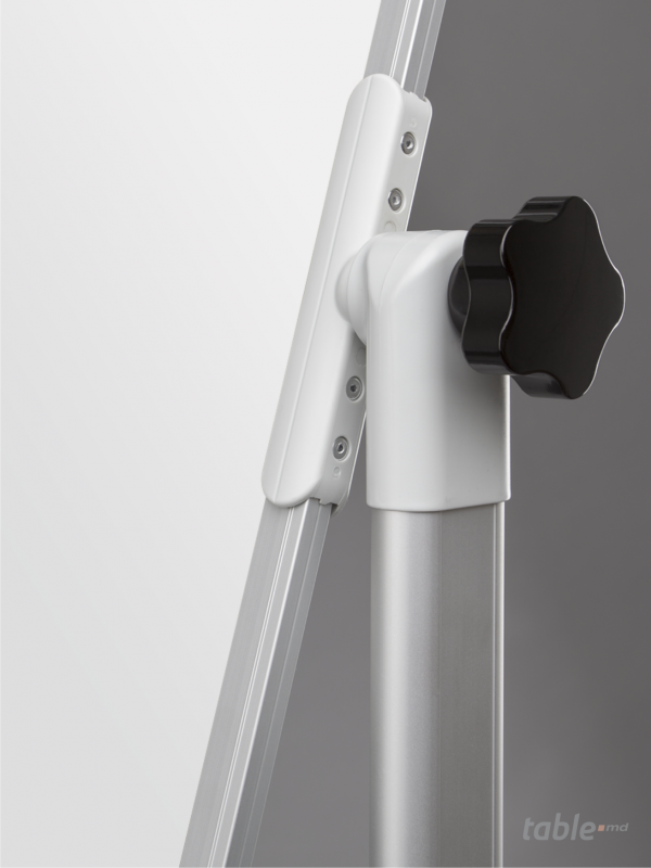 Tabla mobila alba rotativa magnetica are rama din aluminiu de culoare gri cu grosimea de 0,25 mm și lățimea de 20 mm. Tabla este rotativă, având posibilitatea de a scrie pe ambele părți. Fixarea tablei se face pe laterale, cu posibilitatea de blocare sub orice unghi de înclinare. Suport mobil din aluminiu, prevăzut cu rotile blocabile. Tabla este prevăzută cu suport pentru marker. De asemenea setul conține 2 cleme de prindere pentru blocurile de hârtie și setul de montare.