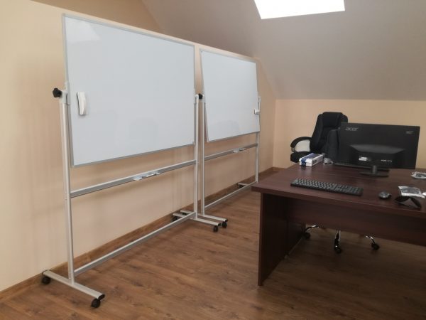 Tabla mobila alba rotativa magnetica 120×90 este un articol de bază al companiei table.md. Punem la dispoziția dumneavoastră 3 tipuri de suprafață: Whiteboard – pentru scrierea cu markerul, suprafața verde – pentru cretă și textil – pentru prinderea informației cu butoane/pioneze. Tablele pe suport sunt direcționate, în special, pentru spațiile care nu permit instalarea tablei pe perete sau există necesitatea ca tabla să fie mobilă.