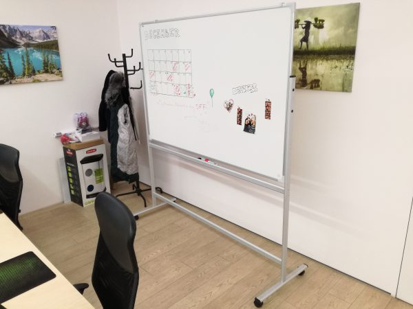 Tabla mobila suprafata tesatura este un articol de bază al companiei table.md. Punem la dispoziția dumneavoastră 3 tipuri de suprafață: Whiteboard – pentru scrierea cu markerul, suprafața verde – pentru cretă și textil – pentru prinderea informației cu butoane/pioneze. Tablele pe suport sunt direcționate, în special, pentru spațiile care nu permit instalarea tablei pe perete sau există necesitatea ca tabla să fie mobilă.