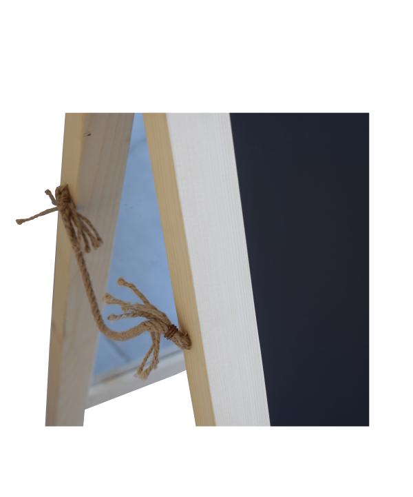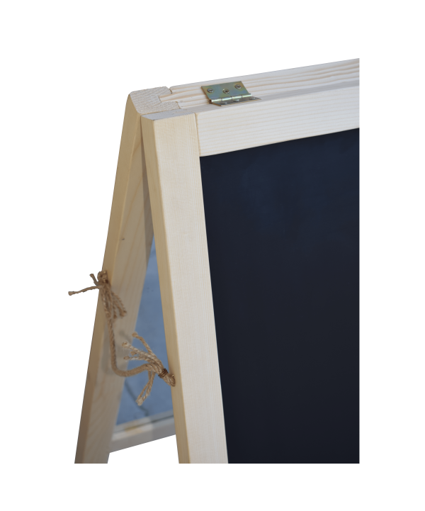 • Construcția lemnoasă protejată de lac pentru exterior, și dotarea suprafețelor de scriere cu o placă metalică în spate face posibilă expunerea tablei atât în interior cât și în exteriorul localului tău.