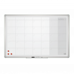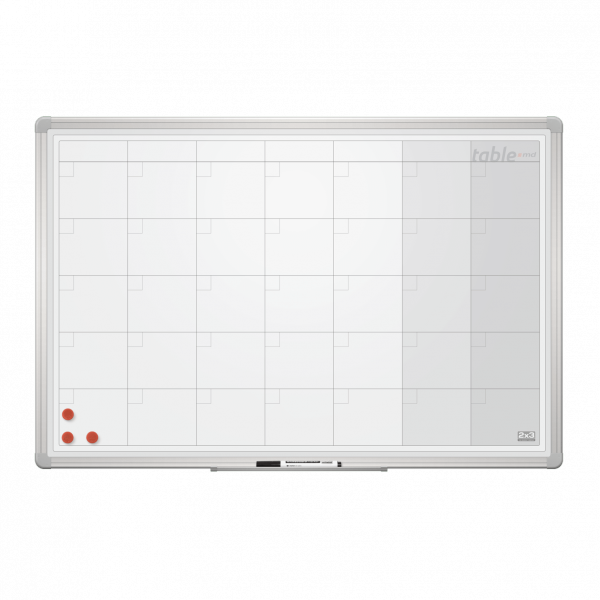 Ideală pentru organizarea timpului (este disponibil tablă pentru planificarea anului, planificarea lunii, săptămânii, zilei după ore etc) pe orizontală sau verticală. Pot fi însemnate diverse informații precum zile sau ore pentru programarea activităților/ întâlnirilor/acțiunilor etc. Suprafață de lucru metalo-ceramică magnetică, de culoare albă, cu liniatură gri. Ramă din aluminiu, cu colțar ABS din plastic. Fixarea de perete se face cu 4 șuruburi (incluse în set). Setul conține și un suport de 30 cm (pentru marker), 1 cariocă și 3 magneți. Tabla este incasabilă la șocuri punctuale. Garanție: 2 ani pentru produs, 10 ani pentru suprafața ceramică.